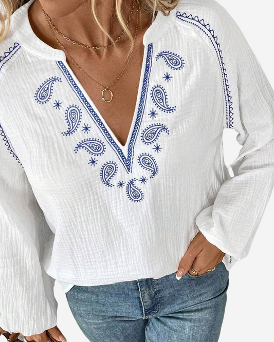 Luna Lace Women's Embroidered Puff Sleeves Blouse